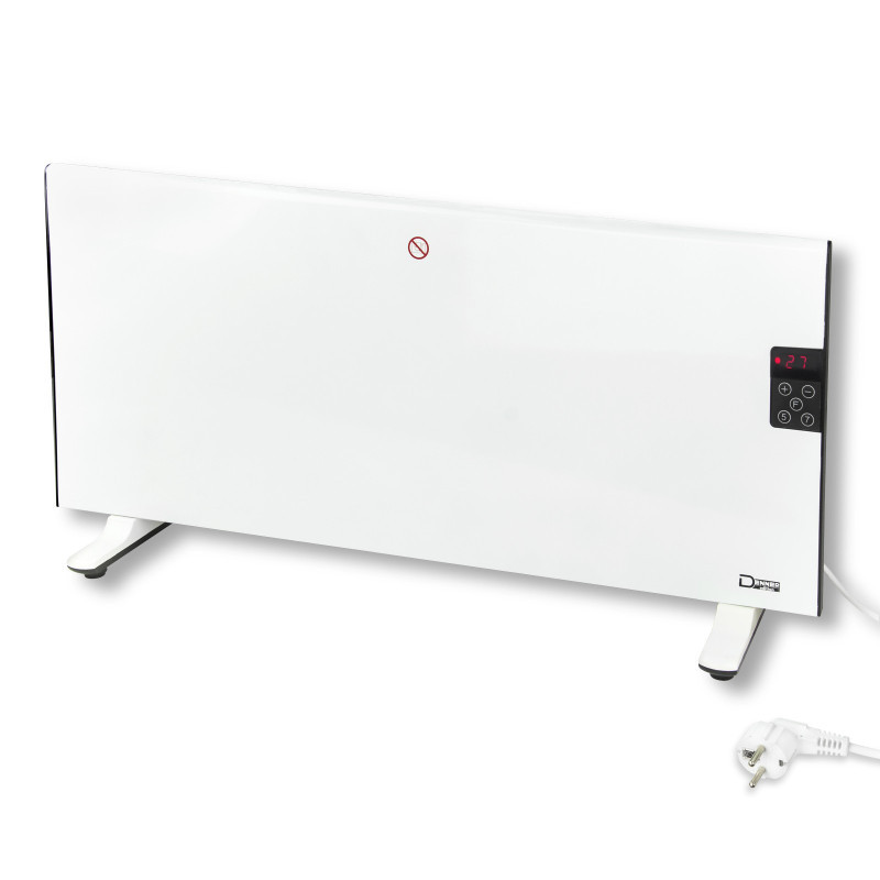 Ohrievač s plynulo nastaviteľnou teplotou pomocou termostatu. LED prevádzkový panel. Programovateľný týždenný program (denné opakovanie) od pondelka do piatku alebo od pondelka do nedele, každý s nočnou prestávkou. Ochrana proti prehriatiu. Len na použitie v interiéri.